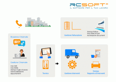 RCSOFT® SRL è una software house evoluta, che si occupa da un ventennio di sviluppo software gestionale. Realizza applicativi software completi, la famiglia GAT SOFTWARE è il nostro core business. I software GAT sono rivolti alle aziende di service di qualsiasi dimensione che effettuano interventi a domicilio in ambito locale o regionale o nazionale, quindi la nostra soluzione è in grado di aiutare le aziende e gestire i propri Team di qualsiasi dimensione e con qualsiasi organizzazione gerarchica (sia dipendenti, sia esterni, sia reti di centri assistenza) in maniera automatica e veloce.